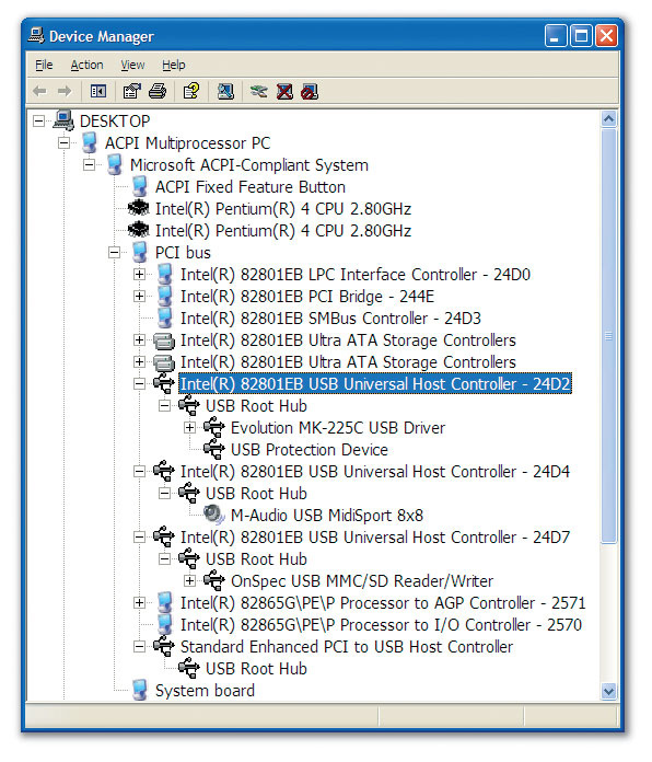 If possible, keep your USB audio interface plugged into its own dedicated PC port to give it the best possible chance of performing well. Digidesign actually specifically state that connection of their M Box interface to a USB hub is not supported, and some other types of USB device are also known to dislike hubs, including cameras, scanners and hard drives, so try to give these a dedicated port as well. If you need to use a USB hub, there are lots of myths surrounding the best make and model to buy, but models from Belkin, Adaptec and Gefen seem to be widely recommended.