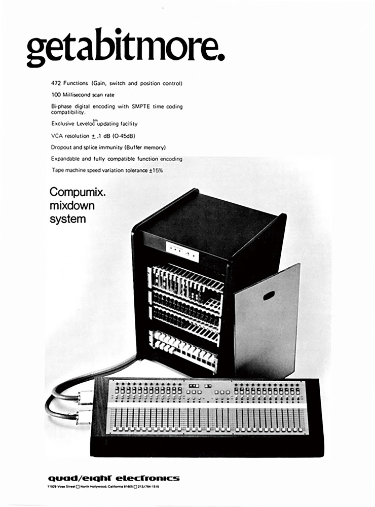 Quad‑Eight’s Compumix was one of the earliest commercial mix automation systems.As productions became increasingly complex in the early ’70s, the challenges of mixing grew exponentially. Multiple pairs of hands were needed to make all the necessary fader moves. A mix could not be recalled or repeated, and it was often necessary to piece together a master take from the best bits of several mixes. The advantages of automating the process were obvious, and by the turn of the next decade, Solid State Logic would be firmly established as market leaders. However, many other mixer manufacturers tried their hand at devising a computerised mix automation system, with varying degrees of success. Among the first to gain a foothold in the real world was the Quad‑Eight Compumix, as used on Neil Young’s 1973 live album Time Fades Away. Young himself hated the album so much he refused to issue it on CD until 2017.
