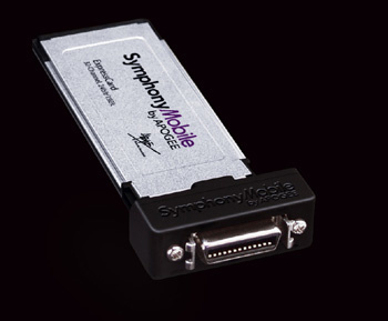 The big news from Apogee at this year's NAMM show was their new Symphony Mobile audio interface for the Macbook Pro. It uses an Express Card to connect an Apple Macbook Pro directly to X-Symphony equipped Rosetta or X-series converters. This, when using two AD16Xs and two DA16X converters, allows a maximum of 32 tracks in and out at up to 192kHz, with latency as low as 1.6ms (at 96kHz).
