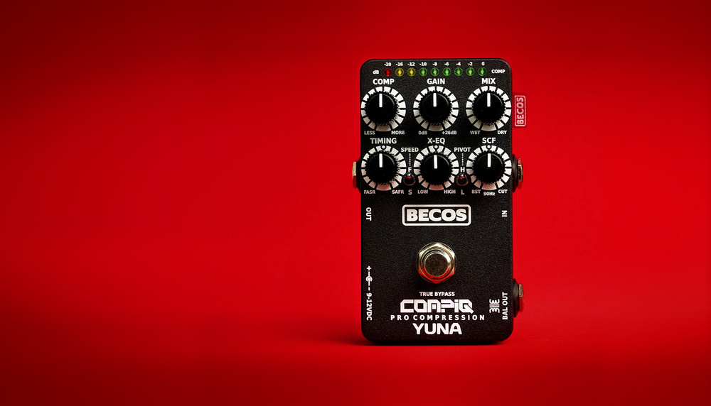 The latest release from Vienna-based Becos FX arms guitarists and bassists with a powerful VCA compressor pedal that’s capable of delivering smooth, natural-sounding results even when applying significant amounts of gain reduction. Despite offering a wide range of compression characters, the CompIQ YUNA has been designed with ease of use in mind, and promises to combine its deep versatility with user-friendly operation.