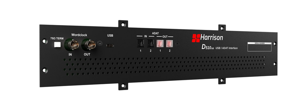 When the system was originally announced, Harrison stated that a USB/ADAT interface option would appear at a later date, and that time has arrived! Named the D510ua, the latest arrival to the 500 Series System can be installed into the rear panel of the D510r, and allows the unit to function as a USB audio interface with up to 10 analogue inputs, 14 analogue outputs and 16 channels of bi-directional ADAT I/O — a total of 26 inputs and 30 outputs.