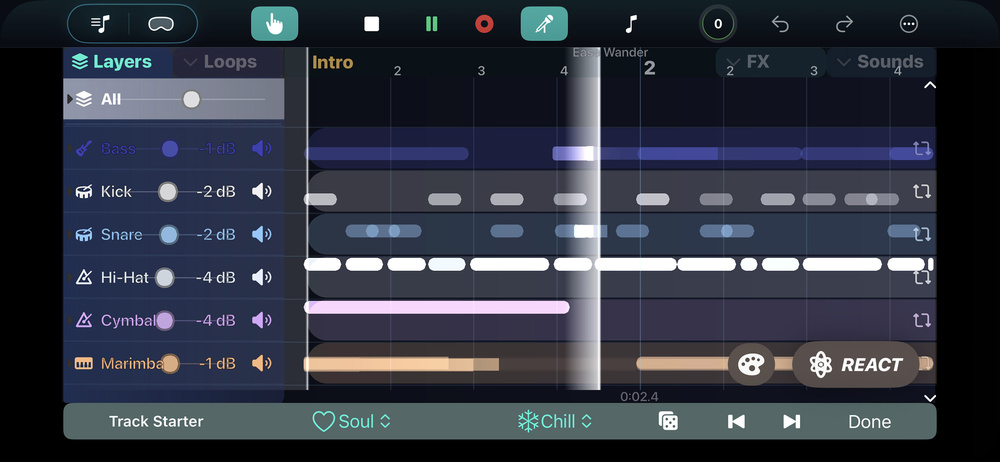 The new App features an AR Mode that allows users to physically walk through instruments placed in a 3D space and hear them through immersive spatial audio — it’s possible to simple move closer to a vocal, step back to the drums and so on. A React function then transforms movement into sound design, with tilting or turning motions reshaping effects and sounds in real time. Users can record and layer different gestures to create evolving, expressive mixes that respond like a live instrument.