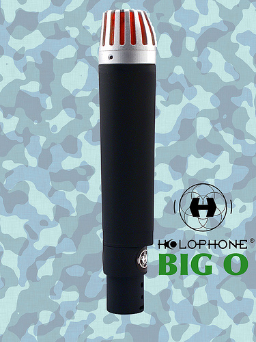 Holophone's Big O (right) is a full-frequency, 20Hz-20kHz omnidirectional mic designed to take center stage, with an articulate and natural tone, minimal proximity effect, and a cool, eye-catching look. Available in matched pairs, the Big O is ideal for drum overheads, acoustic guitars, large vocal groups and choirs.