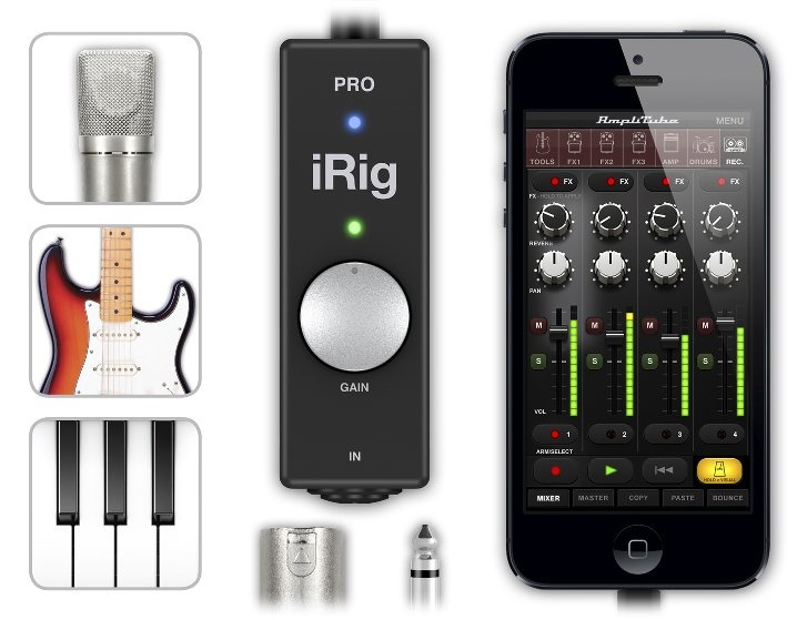 Pocket-sized, and powered by a 9V battery, the iRig Pro is designed to give mobile musicians and songwriters an interface that can handle the widest variety of audio input signals, so they can create music and audio on the go.