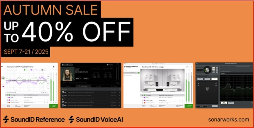 Sonarworks have just launched their Autumn Sale, savings of up to 40% being applied across their range of SoundID Reference and SoundID VoiceAI software packages until 21 September 2025.