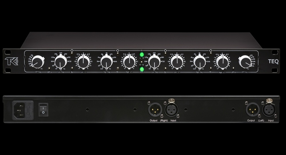The TEQ is dual-channel, 1U rackmount unit that features independent controls for each channel, allowing it to operate in either stereo or dual-mono modes. It’s also kitted out with a built-in Mid-Side encoder/decoder that allows users to process in Mid-Sides as well as traditional left/right stereo. Each channel features two bands that each offer a choice of 10 frequencies and can be switched between peak and shelf filters; the cut/boost range offers 0.25dB steps up to 1dB, and then continues with 0.5dB steps up to 4dB — if users require a larger cuts and boosts, an Ex switch extends each band’s gain range up to ±8dB.There also 12dB/octave low- and high-pass filters that are shared across the two channels.
