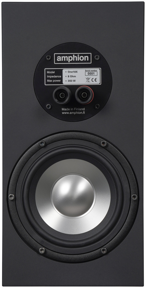 Instead of a port, the One18X loads its bass driver with an ABR, or auxiliary bass radiator, mounted on the rear of the cabinet.The final signature Amphion characteristic is their use of auxiliary bass radiators for bass loading (the term ‘loading’ comes from the idea that you ‘load’ the bass driver diaphragm with the mass and compliance of the air in the cabinet). The ABR technique is closely related to ‘simple’ port tube reflex loading (ABR is in fact a form of reflex loading), but rather than employ a tuned port to extend the bass driver output, a driver diaphragm and suspension (with no motor system) is used.