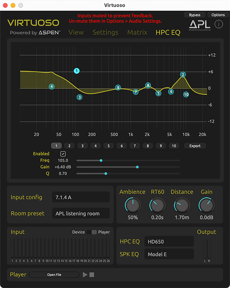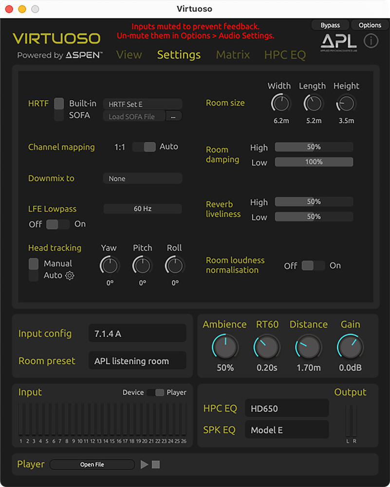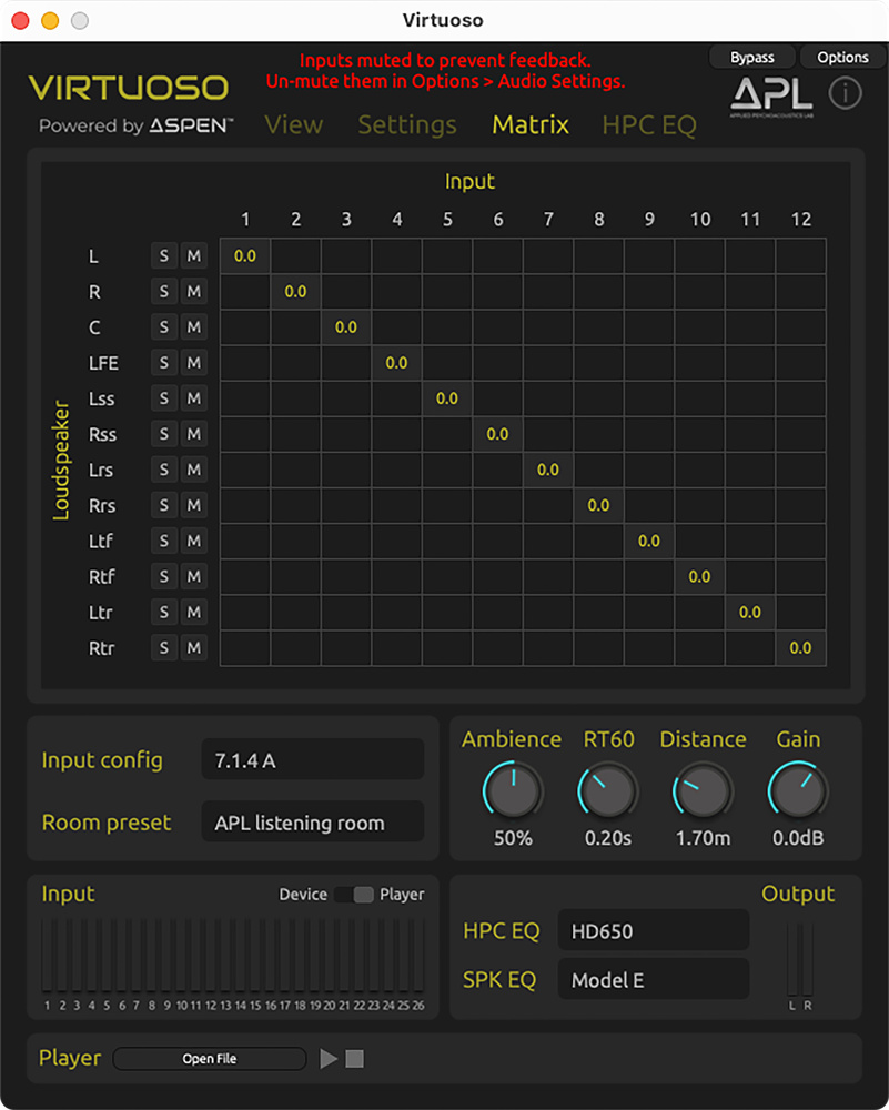 APL Virtuoso is a plug‑in and standalone binaural renderer built on technology developed by Dr Hyunkook Lee, Professor of Audio and Psychoacoustic Engineering and Director of Applied Psychoacoustics Lab (APL) and the Centre for Audio and Psychoacoustic Engineering at the University of Huddersfield. The core psychoacoustic 3D modelling technology of Virtuoso is known as ASPEN (APL Spatial Audio Engine) and, along with its use in Virtuoso v2, APL say that it will soon be available for licensing.