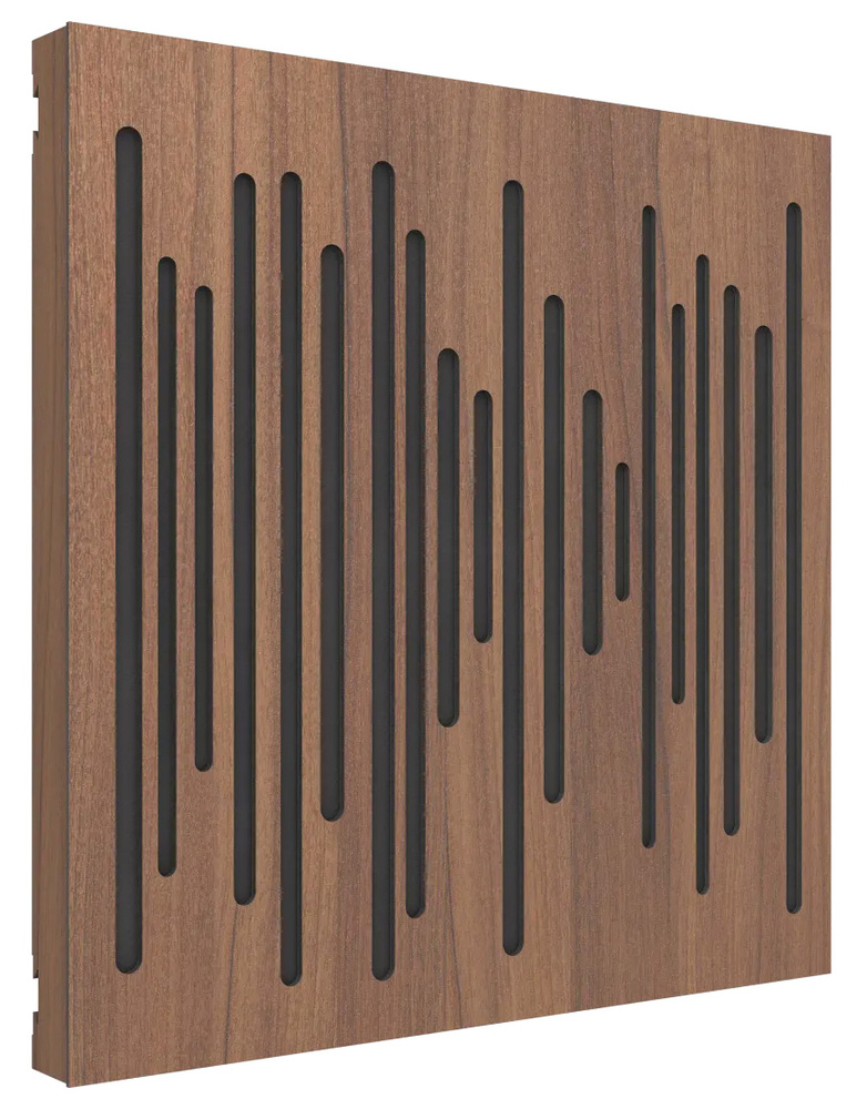 Vicoustic VicPattern Ultra Wavewood MkIIThe most basic broadband absorbers from Vicoustic fall into their Cinema range, which includes a selection of square panels that pair their VicPET filling material with either a flat or curved front face. One of the company’s most popular designs, though, is the VicPattern Ultra MKII, a square panel that houses a VicPET filling within an MDF/high‑pressure laminate frame assembly. The MkII version boasts increased low‑frequency performance compared to its predecessor thanks to an additional layer of VicPET, and comes fitted with a patterned faceplate that allows the panel to offer a combination of reflection and absorption; a choice of five pattern finishes are available, along with seven colour options. Helpfully, Vicoustic offer an upgrade kit that allows owners of the previous‑generation version of the Ultra to upgrade their panels to the new spec.