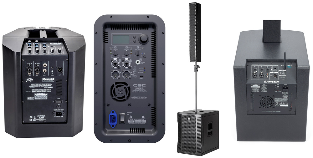 Left to right: Peavey LN 1063, QSC KC12, RCF Evox 12, Samson Resound VX8.1.
