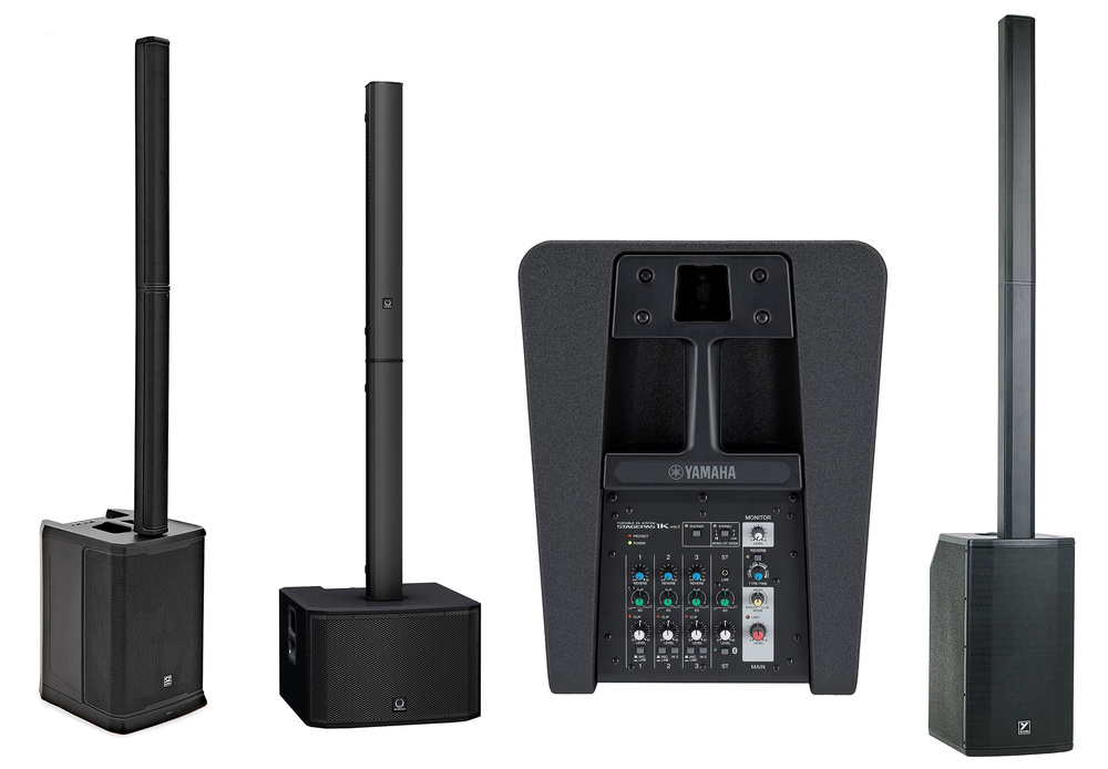 Left to right: SubZero L48, Turbosound iNSPIRE iP3000, Yamaha Stagepas 1K MkII, Yorkville YXL Tower12.