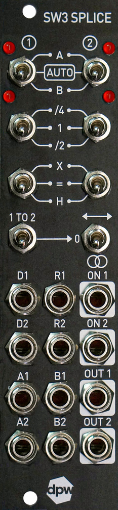 The SW3 Splice from Sweden’s DPW Design is a module that seeks to deliver both: with a compact panel of 6HP, the all‑analogue SW3 expects two disparate signals and offers various ways of splicing them together. These might be audio or sub‑audio frequencies, static or moving; it’s the kind of thing whose efficacy really has no limit, since it simply depends on what you decide to feed it. In a nutshell, the SW3’s USP is that it can take two signals and switch between them ultra‑quickly when their signals converge, making for some pretty seamless splicing and modulation, combining signals in a rather unique way.