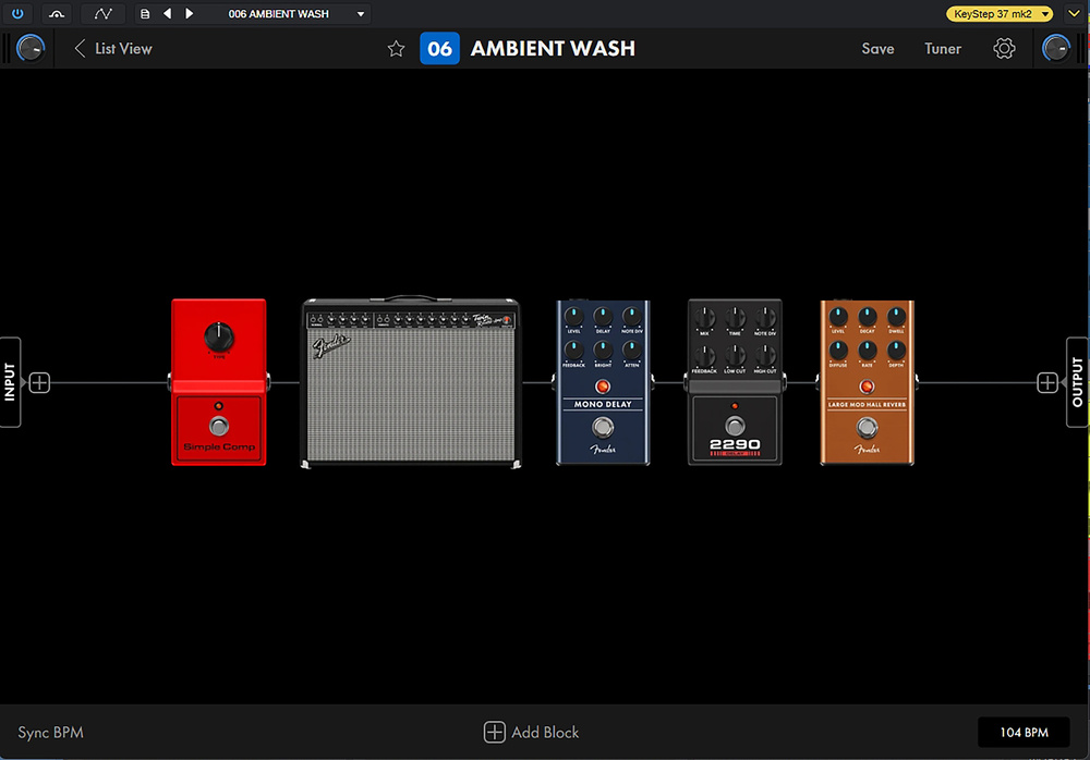 There are 39 guitar amps, 18 bass amps and dozens of carefully dialled‑in presets to find that particular tone. There are 125 effects pedals to drop into the signal chain, covering pretty much everything you can imagine. Amongst others, there are 14 reverb pedals, 13 delays, 15 overdrives and 15 modulation pedals; plenty to play with.