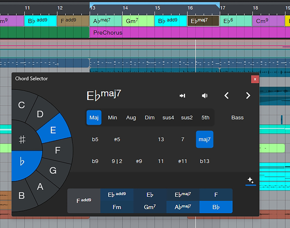 The Chord Selector is a window that lets you explore chords, progressions and different qualities that can then be applied to your audio and MIDI tracks. It’s a brilliant songwriting tool... and the interface feels a whole lot slicker and more accessible.