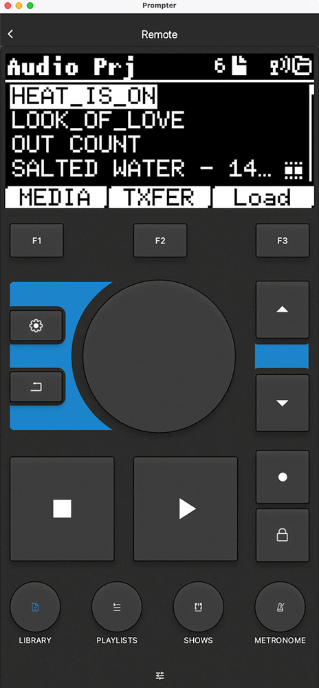 Physically, the B.Beat appears rugged enough to handle life on the road and requires little or no setup compared to a computer‑based playback system, which is a big attraction for any live performer. The large, backlit buttons make it straightforward to use on a dark stage, and simple but important things like being able to skip or add songs and edit output routing on the fly are very well thought out and implemented. The Prompter app (see box) is a great addition for both controlling the B.Beat remotely and for displaying charts and lyrics for musicians.