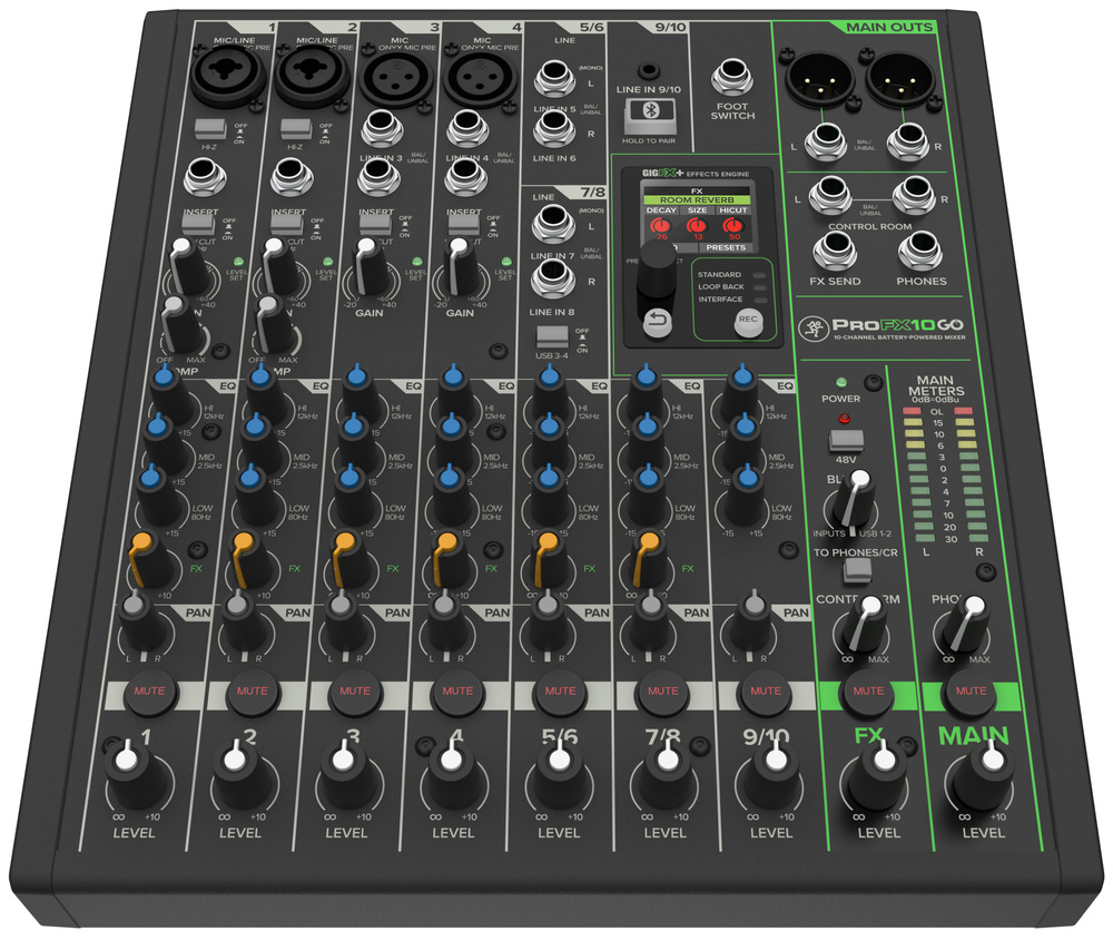 With its compact footprint and the option to run from a built‑in battery, the ProFX10 Go is Mackie’s most portable mixer ever.