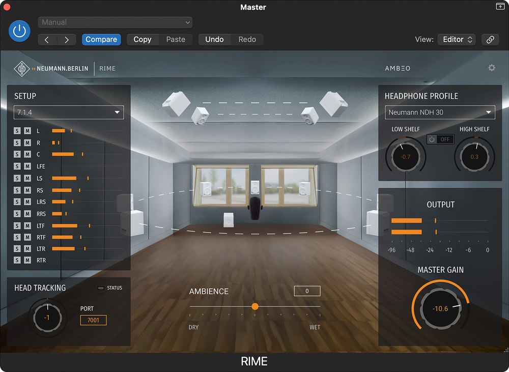Either way, the problem is that no two people have the same ears or bodies. An HRTF or dummy head response that works well for you might not work so well for me, and vice versa. With this in mind, companies such as Genelec and Embody have developed systems for deriving personalised HRTFs from photos or videos, whilst others are content to use generic measurements in the assumption that these will be close enough for most people. Neumann’s approach doesn’t leave open the possibility of using different HRTFs, but even so, RIME does allow a certain amount of personalisation, as we’ll see.