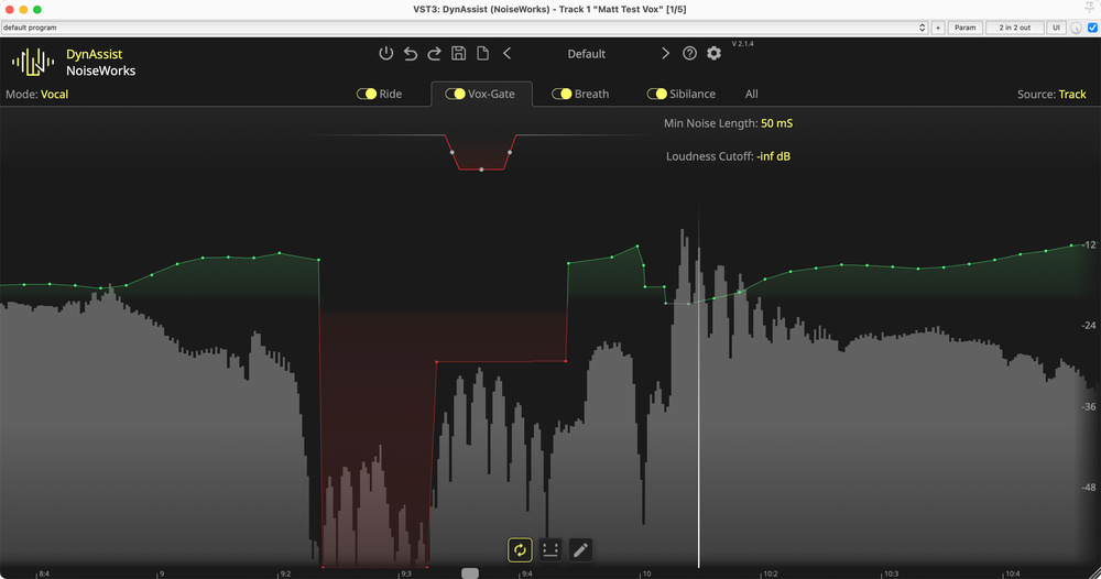 The Vox Gate uses machine learning to identify non‑vocal/dialogue areas in a file, and lets you decide how much they’re attenuated.