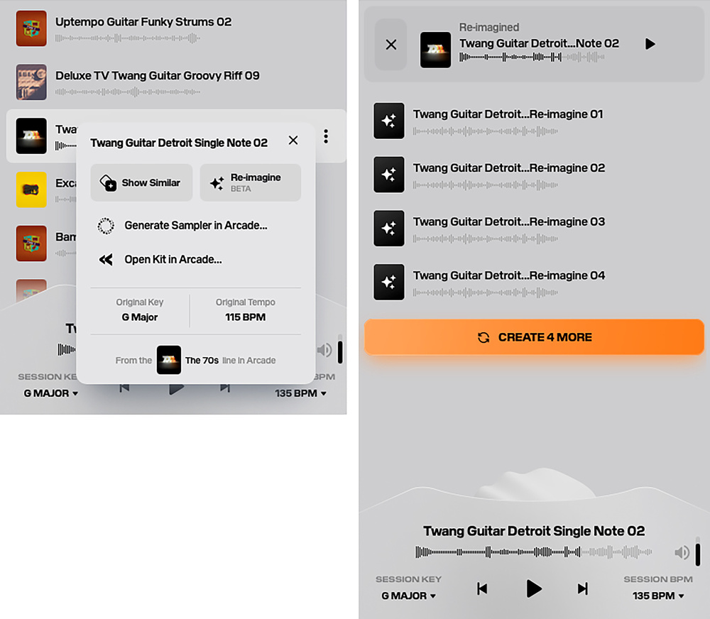 Co‑Producer includes the Show Similar and Re‑Imagine features (left) and the latter, which will generate alternative versions of a selected loop (right), makes it clear that the plug‑in is more than just an AI‑powered search engine.