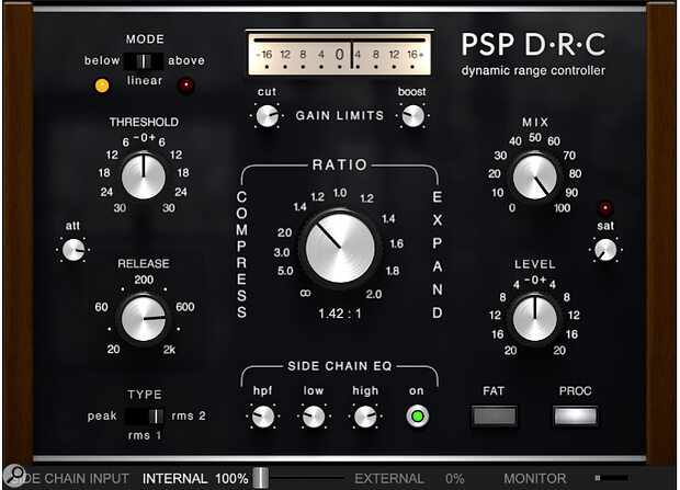 Although inspired by the hardware dbx 118, PSP’s new DRC plug‑in is not an outright emulation of it. Like the dbx, it’s capable of compression or expansion, and it can work across the entire dynamic range of the input. However, it’s a little unusual in that it also offers the option to process only signals that fall above or below the threshold. It’s also worth noting that, with appropriate settings, two instances could be pushed into service as a complementary compressor‑expander pair. DRC supports all the usual plug‑in formats on Mac and Windows, and authorisation requires an iLok account.