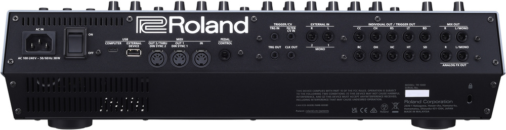 Sat next to an 8S or Rytm, the TR‑1000 is massive. It’s a heavy, chunky wedge built to be a studio centrepiece and pro touring instrument. The thickness and raked panel make room for that analogue synth circuitry as well as an internal power supply, and the resulting rear‑panel space has been stocked with a full set of split track outputs, full‑sized MIDI, USB ports, some analogue trigger/CV connectivity and more.