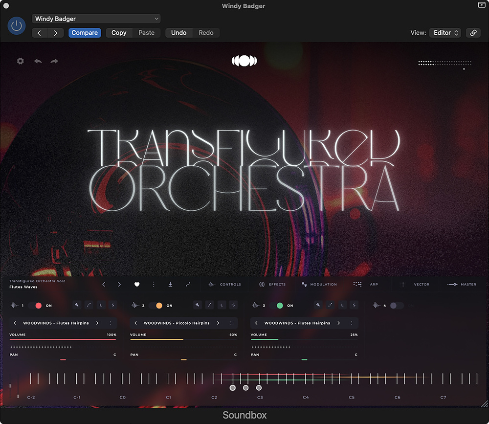 Transfigured Orchestra Vol 2 is an expansion pack designed to run on AudioModern’s Soundbox platform (downloadable free of charge for macOS, Windows and iPad). Vol 1 of Transfigured Orchestra featured 30 patches, focusing on the softer side of the orchestral sound palette and including pianissimo and sordino strings, soft French horns and clarinets, organic‑sounding woodwind and granular transformations. Sonora Cinematic Transfigured Orchestra Vol 2 delivers what are termed Hybrid Gestures, which I’d describe as cinematic‑style orchestral sounds, some of which have been treated using further processing or created from hybrids of other sounds. The pack includes 20 presets, the ones described as Waves offering unprocessed orchestral crescendos. Traditional orchestral instruments used to create the presets include violins, violas, cello, basses, flutes and even a flugelhorn.