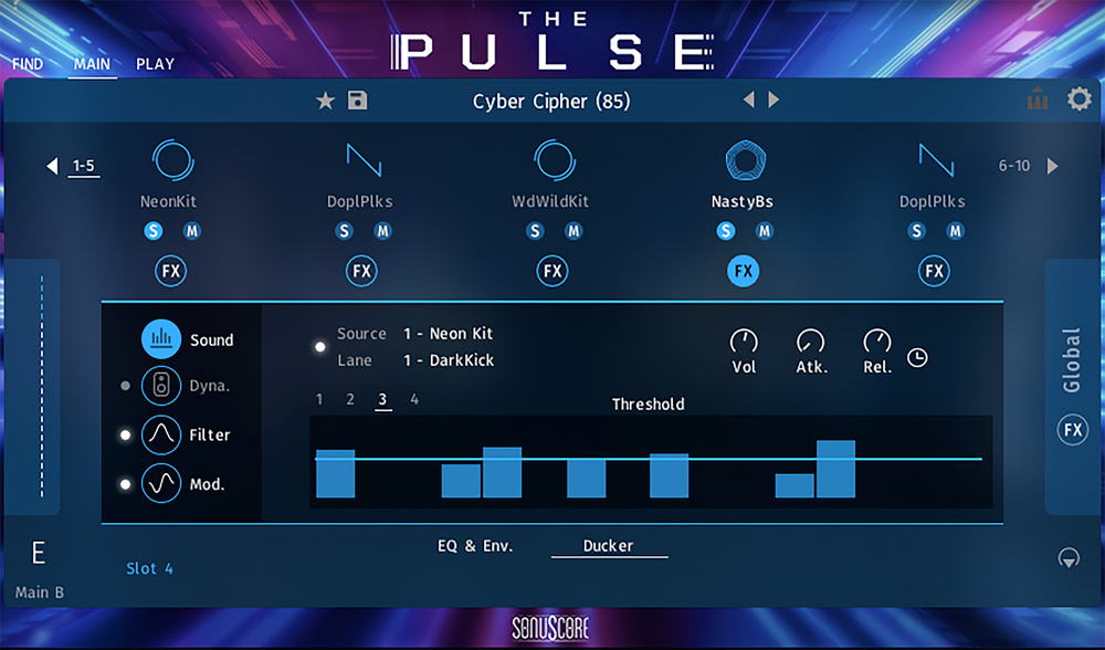 The Pulse’s feature set includes a very neat Ducker option for easy side‑chain compression.The Pulse’s feature set includes a very neat Ducker option for easy side‑chain compression.