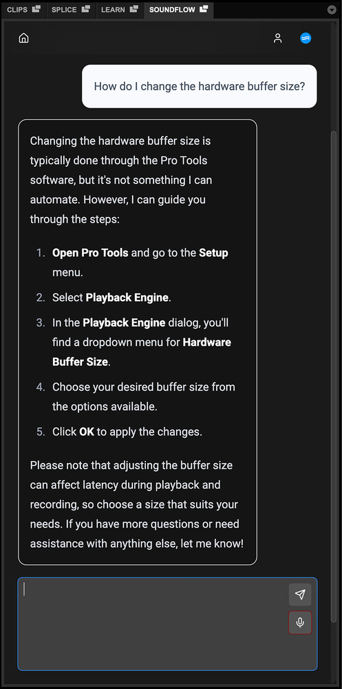 Session Assistant shows the potential of conversational, AI‑assisted interaction. It uses either typed or voice input to carry out session setup tasks such as creating and naming tracks and moving tracks into track folders. If it needs clarification, it asks, and as it performs actions it shows them on screen, allowing the user to learn by watching. This dual purpose, as both automation and education, is a subtle but important change. It means SoundFlow isn’t just doing things for you; it’s showing you how they’re done.
