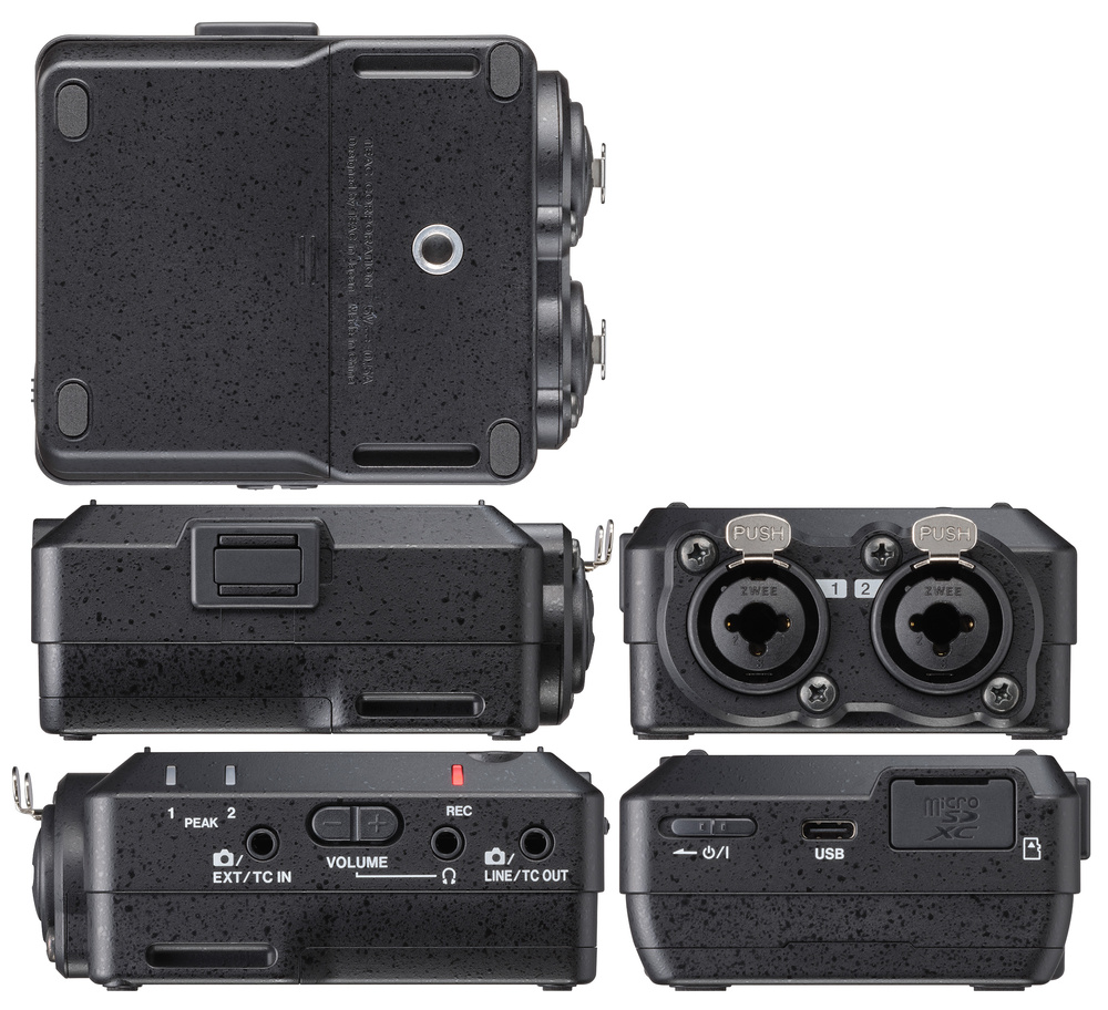 The FR2‑AV is almost as small as it could be while still housing batteries, XLR connectors and the microSD card it records to.