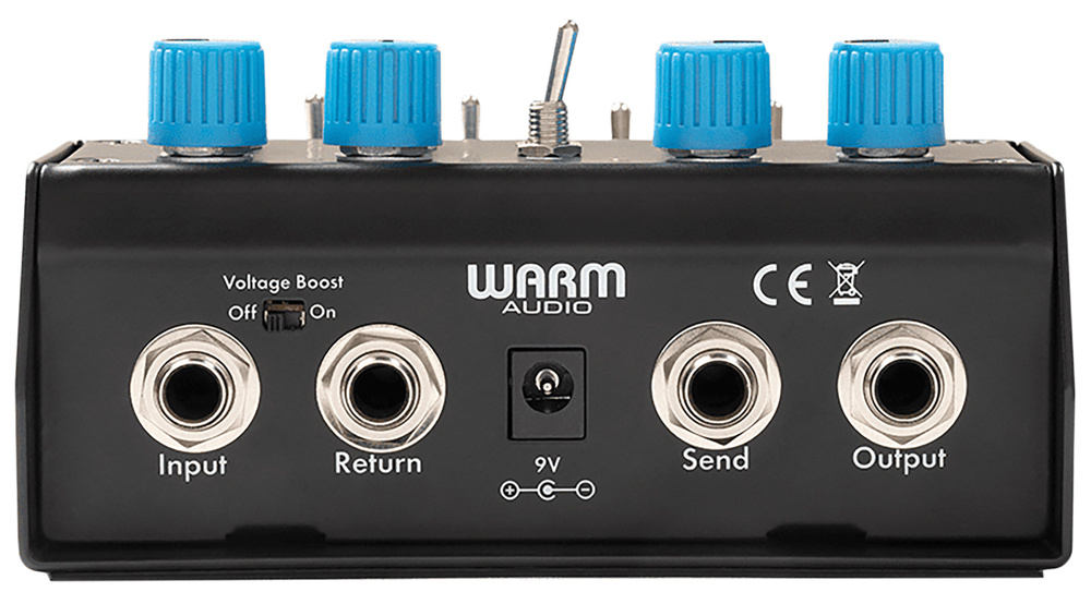 Next comes a three‑position switch for selecting Distortion, Boost or Overdrive. Boost provides a nominally clean boost, while Overdrive handles lower‑gain drive sounds. Distortion delivers more dirt and saturation of course, but it still never gets excessive. Warm Audio have also included insert send and return jacks, so that other effects can be placed between the two drive channels where desired. A graphic EQ could be a very interesting addition, for example.