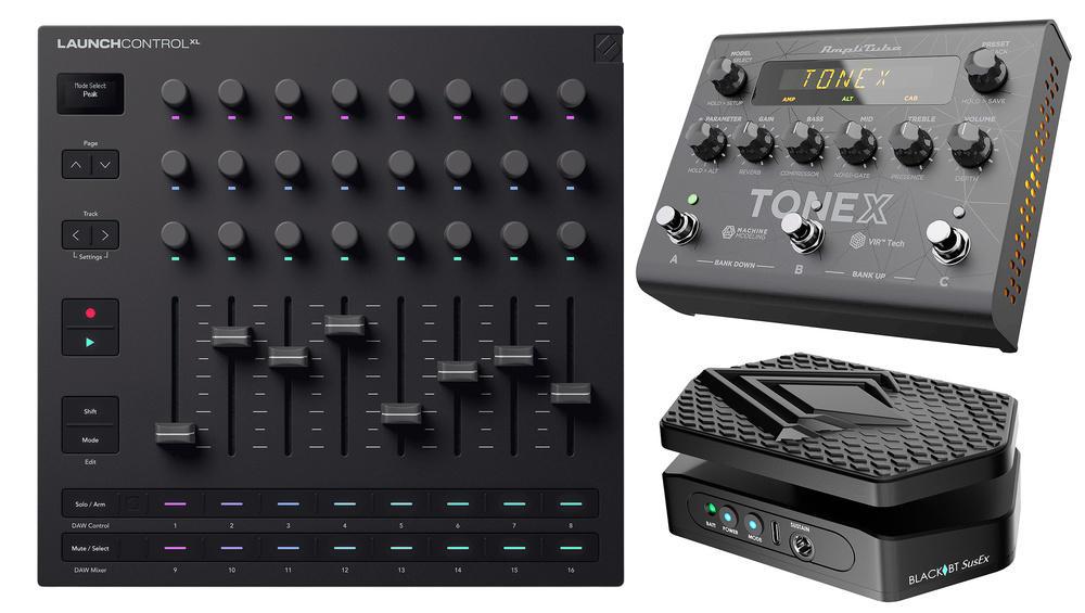 Novation Launch Control XL3, IK Multimedia Tonex Pedal, BlackBT SusEx Pedal.