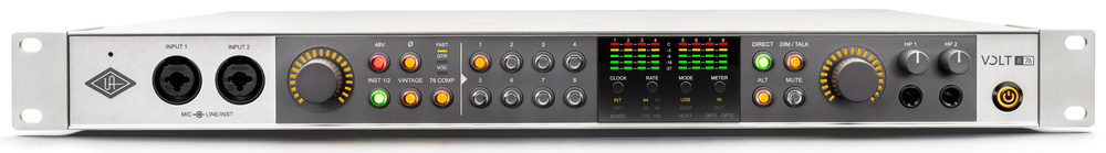 At the heart of this studio will be the brand-new Volt 876 interface from Universal Audio. This 1U rackmounting interface provides a generous 24 inputs and 28 outputs via USB, including eight analogue inputs boasting UA’s premium preamp and analogue 1176-style compression. The preamps can be set to Vintage mode, offering the sound of UA’s classic 610 preamp, while the monitor section includes provision for two pairs of monitors, plus hands-on control over level, mute, dim and talkback. There’s digital I/O via ADAT (and word clock for sync), plus full‑size MIDI ports, and two headphone outs for monitoring and foldback. Two of the preamp inputs are conveniently located on the front panel for ease of access when the Volt 876 is rackmounted.