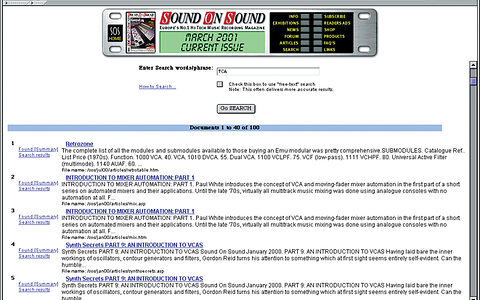 To find, say, all live recording articles that mention Avid, enter: live+recording +avid - and use sidebar filters to narrow down searches further.