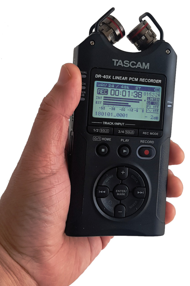 The cardioid capsules of stereo recorders and affordable stereo mics are often configured as a coincident X‑Y array. At practical distances when recording ensembles, though, the recording angle tends to result in a narrow image. But increasingly, as with this Tascam DR‑40X, you’re able to change the angle.