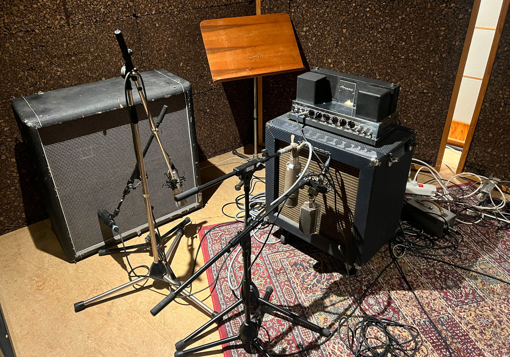 Bass guitar was tracked using no fewer than five separate rigs. This photo shows one of them.Bass guitar was tracked using no fewer than five separate rigs. This photo shows one of them.