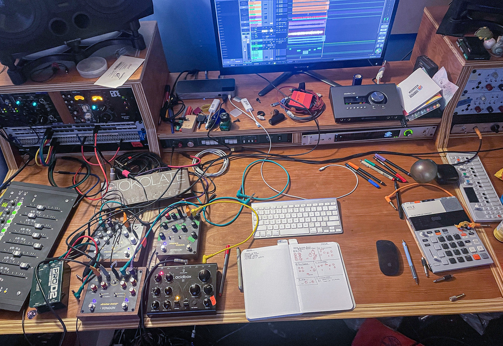 Having finished the lion’s share of tracking in Lisbon in late 2023, Dibb and Lennox separated to continue working on the album individually, before reuniting the following March for further recording and post‑production. This was to take place in Baltimore; firstly at Dibb’s own studio, Rabbit Hole, and subsequently at the larger, SSL‑furnished Wright Way. “After we did the main recordings, I did kind of a whole run of stuff with a [Sequential] Prophet‑5,” remembers Lennox, “just kind of going through every song. I spent a couple of weeks, just making little parts anywhere I thought a song needed something.”