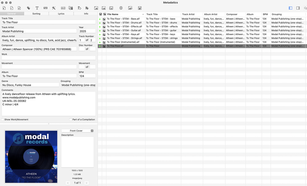 ...and you can then manage it in a third‑party app such as Metadatics. Note that you’ll need metadata for each version you release, including any stems intended for sync....and you can then manage it in a third‑party app such as Metadatics. Note that you’ll need metadata for each version you release, including any stems intended for sync.
