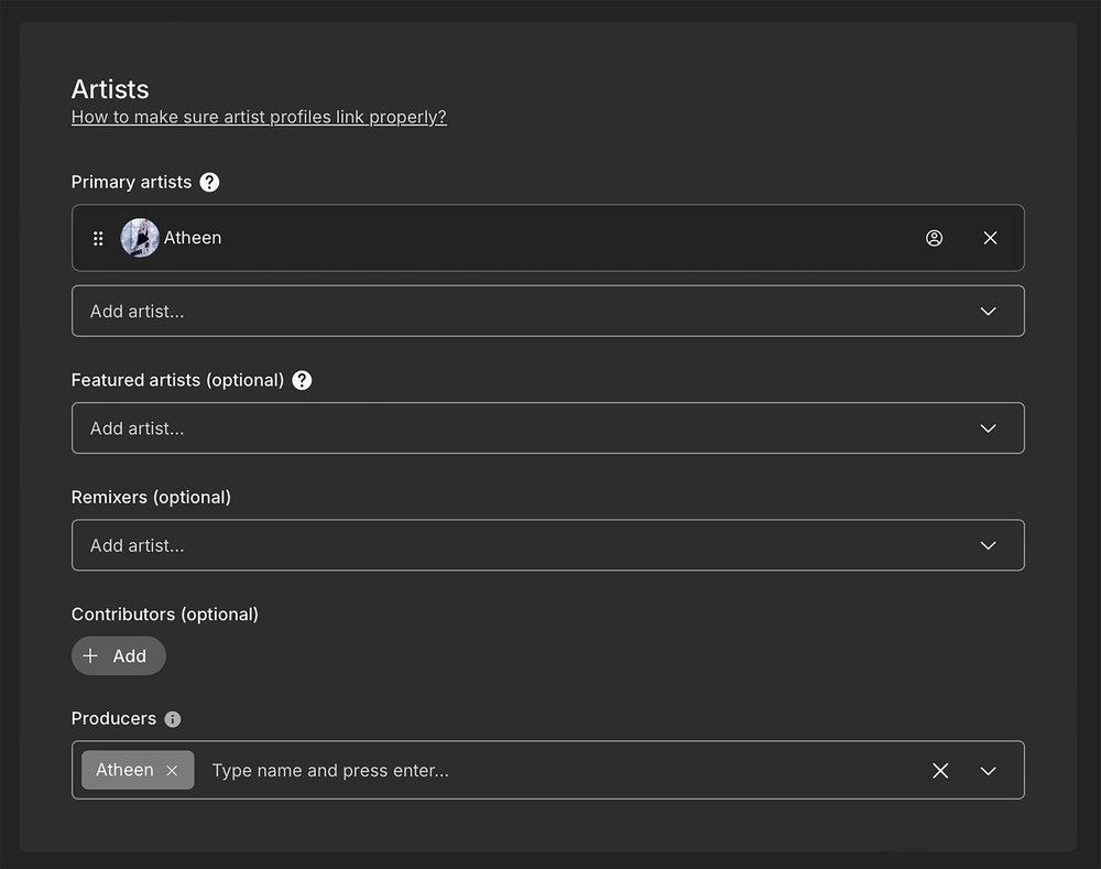 In SOSFA, go to the Distribution tab and select ‘Add Release.’ With all assets and metadata ready, uploading is straightforward. Click into each track to enter title, artist, mix version and other details. The platform will automatically flag any missing information. On the Release Info tab, add yourself as the composition owner, and either you or your label name as the master recording owner, according to your PPL registration. The Cover Art tab lists artwork guidelines as a helpful reminder.