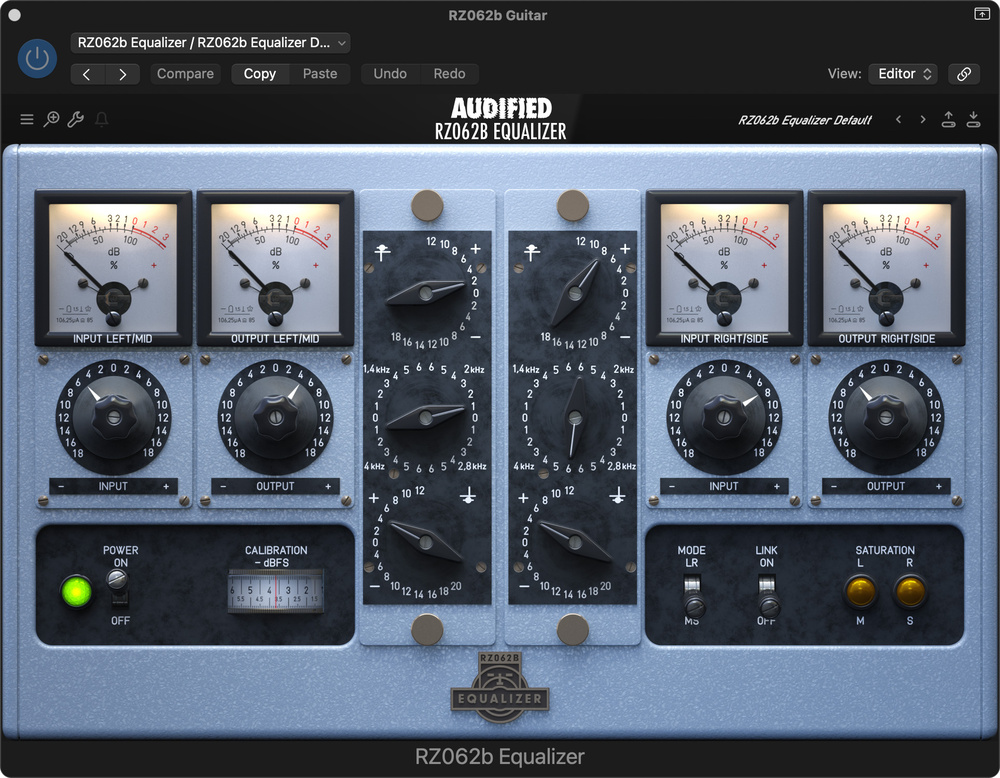 As you can tell immediately from the GUI, the 1A equaliser emulates the classic Pultec EQP‑1A, a valve‑amplified passive EQ famous for the unusual curves created when boosting and cutting around the same frequency. That’s possible here, and it can be especially useful for shaping the low end — often effective when you need to rework kick drums and bass instruments. Two other standout features are the Calibration knob — again, this allows you to dial in analogue‑ish saturation to taste — and a Mid‑Sides mode. Pultec‑style EQs can be useful on any number of instrument tracks, and vocals, but 1A’s M‑S option means you have more scope than on many emulations for sculpting stereo signals, such as synths, drum and mix busses or even in mastering. An output level control lets you compensate for any overall level change resulting from your EQ moves.