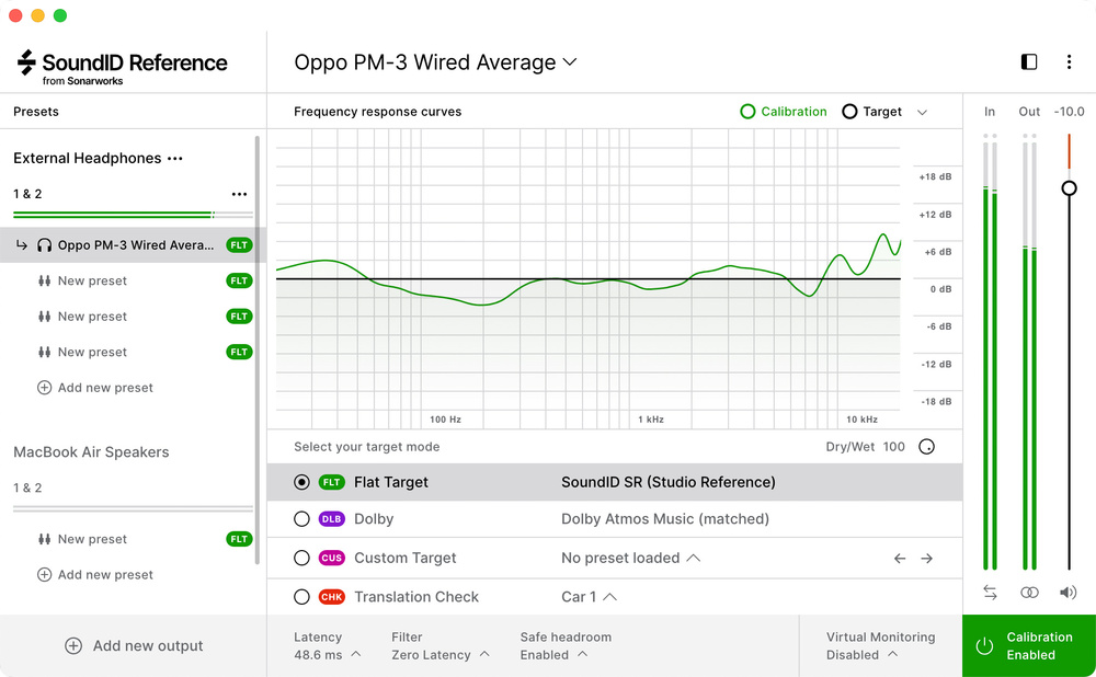 Very often, for example, I’ve played back one of my mixes with headphone correction disabled, thought it sounded great, then winced when SoundID reveals that the cymbals are sounding vicious at 10kHz. Other times I’ll be feeling pleased with myself when the ‘flat’ response sounds perfect, only to discover that it sounds horribly honky or muddy on the uncorrected ’phones. And, in general, the less the spectral balance appears to change when I switch, the closer it is to being right, and to translating well across other systems.