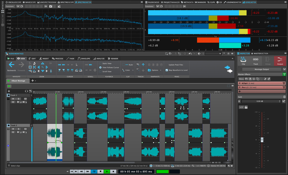 It’s vital to consider the context when working on any individual track. Here we see an entire album laid out in WaveLab’s Montage view.